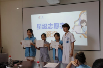 为了鼓励参与的志愿者,医院工作人员从所有参与过活动的小志愿者中评选出4位优秀志愿者和3位星级志愿者,颁发了荣誉证书和奖品。